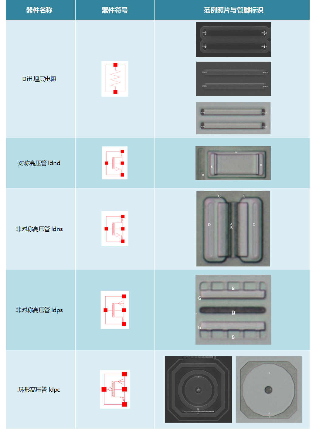 3.2 特征器件列表(不包括普通NMOS 和 PMOS)